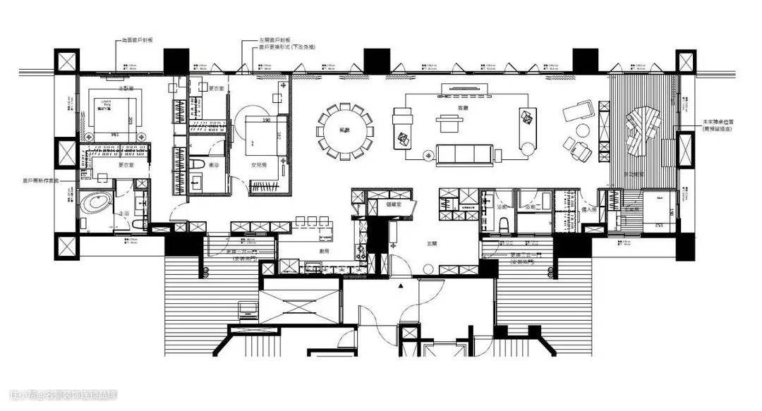 主卧室卫浴一般就在主卧室中,如果没有包含更衣室的,建议规划在入口处,避开浴室门对床头。若有更衣室,就在紧邻更衣室的位置 ,最好是走出浴室就是更衣室。