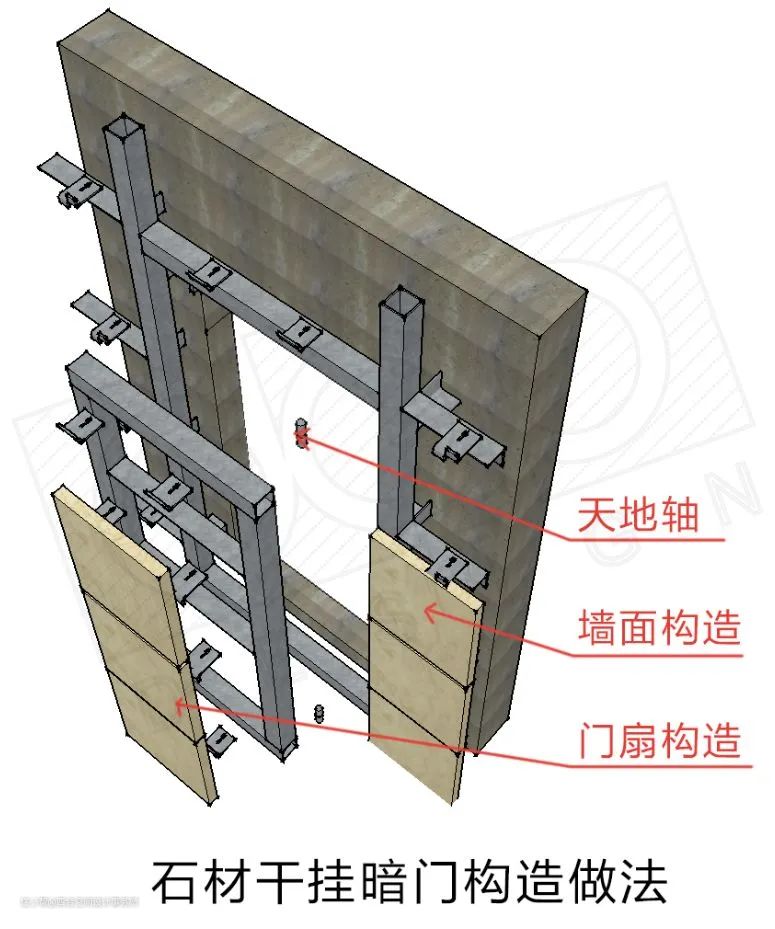 b、门可以开启的角度大小是由天地轴的居中程度来决定的,天地轴越居中,暗门可开启角度越大。