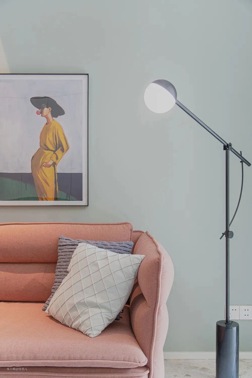 对于自己搭配能力有信心的人,还可以加入一点俏皮的跳色,比如单人沙发、抱枕、挂画等可更换和移动的物件,分散点缀。