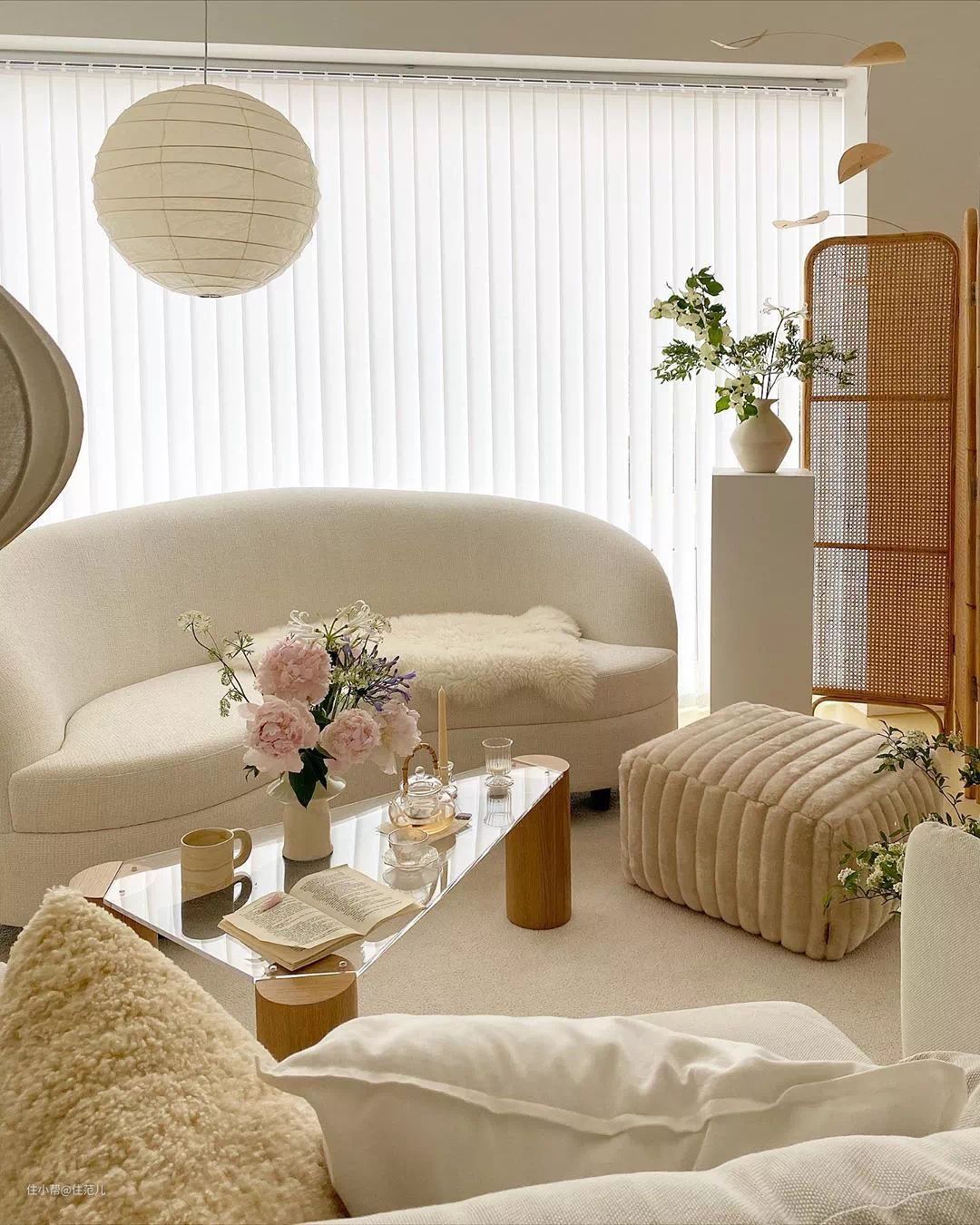 在色彩搭配上,只要空间把握好大面积米色or白色背景基调,家具和软布艺遵循同色系,肯定不会出错。