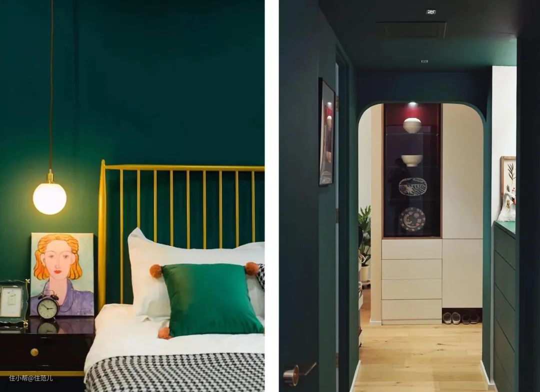 打造轻古典色彩墙的核心,就是在纯色里加黑,用色彩墙来衬氛围,而不是墙面直接跳出来。