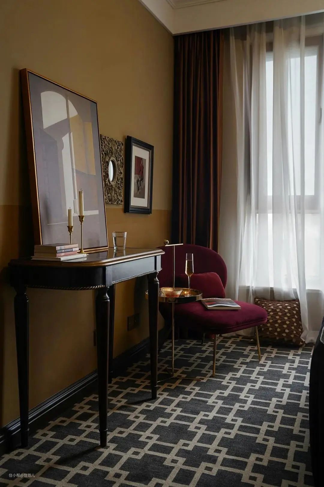 金属质感(黄铜)和丝绒、皮革等软装面料,结合相应色彩才能做足氛围。