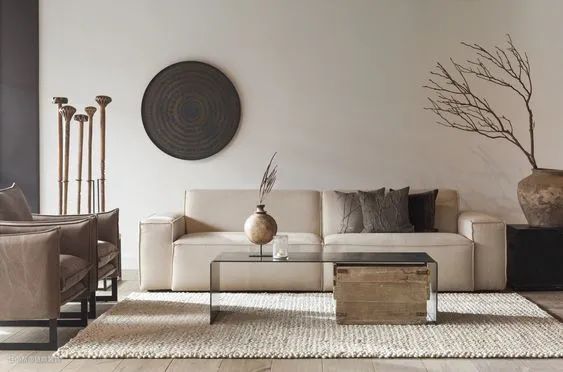 侘寂风是一种比极简风更加冷淡的风格,不会有跳脱的亮色出现,没有强冲击力的色彩,常用大地色作为基础用色,米色系、高级灰也是常用的色调。枯寂、素净的色调正是侘寂风所传达的精髓。