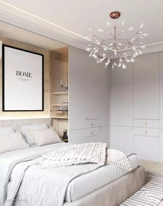 如果卧室面积够大,或者你需要大量的储物柜,可以在卧室的床头或者一侧都设置柜体,这里需要注意的是,对于有窗户的一面墙,最好不要设置大面积过深的柜体,会影响采光。嵌入墙里的封闭式柜体,我们平时只需要打扫表面,实用美观。