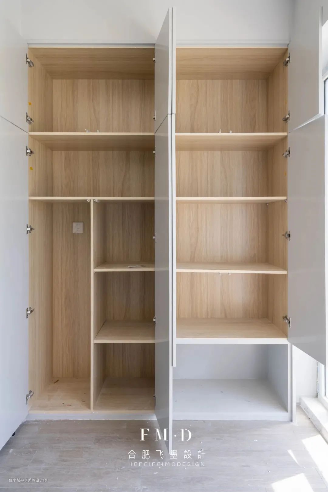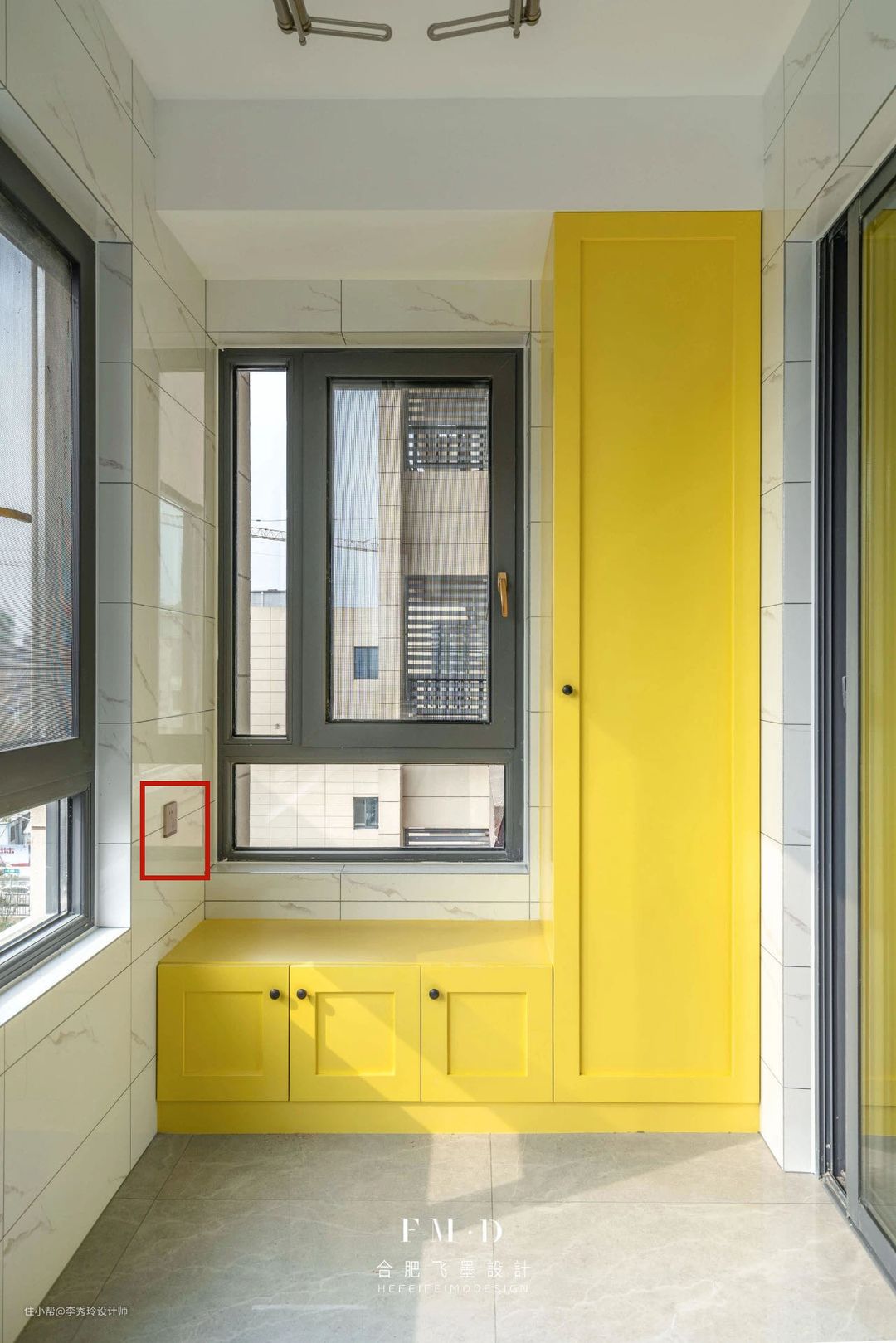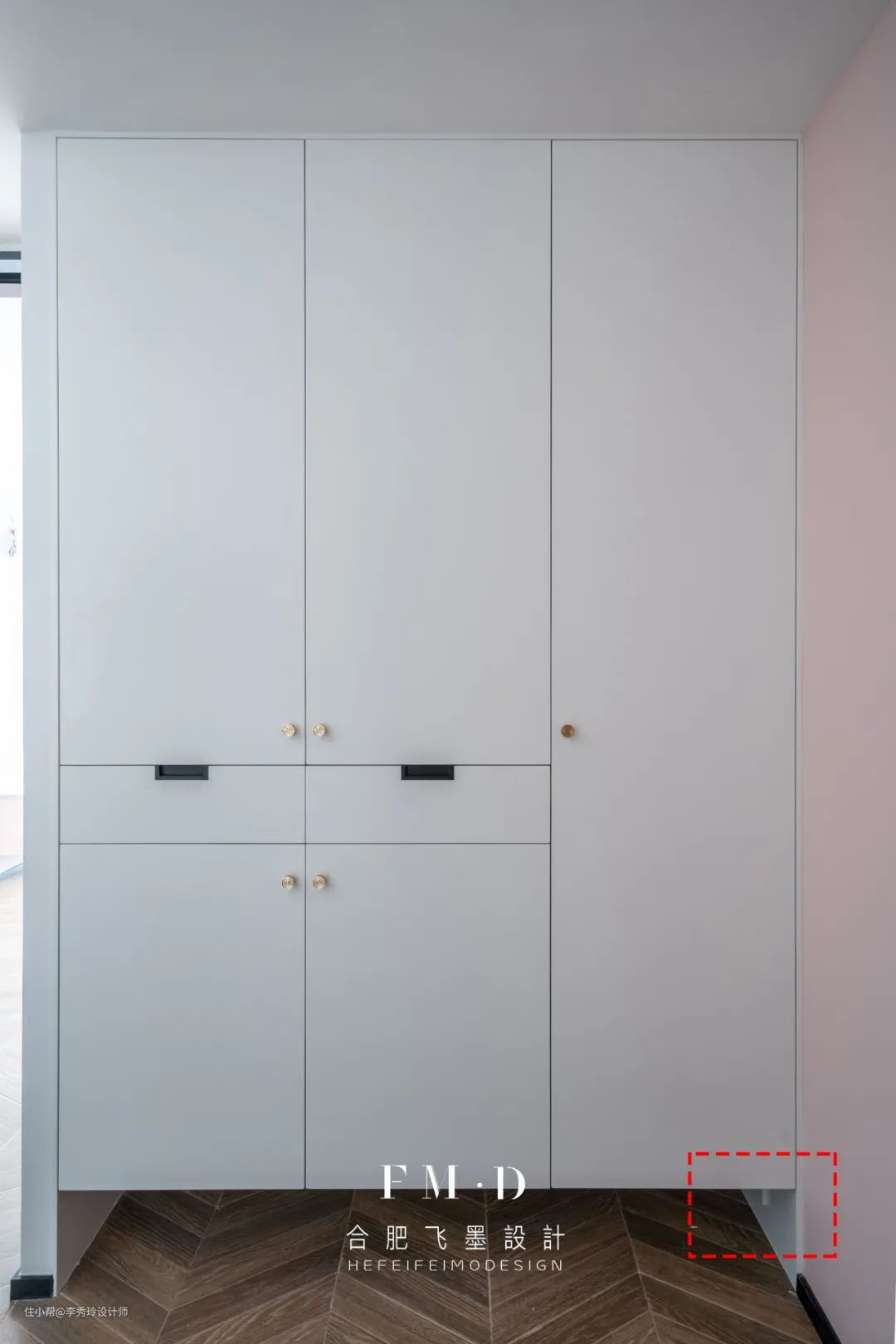 ③有底部换鞋区的玄关,底部设计一个插座,可以供烘鞋器、扫地机器人、小夜灯等物品使用。