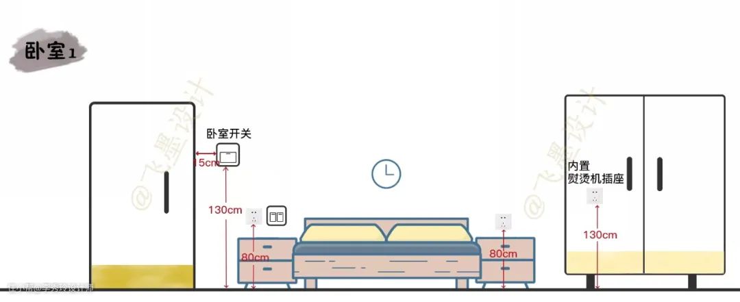 高度建议设计在0.8m左右,两边插座的距离要根据床大小定。