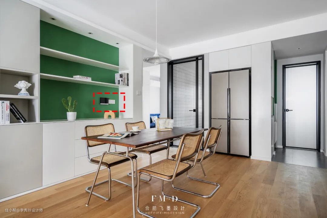 △餐桌贴墙,墙面设计插座