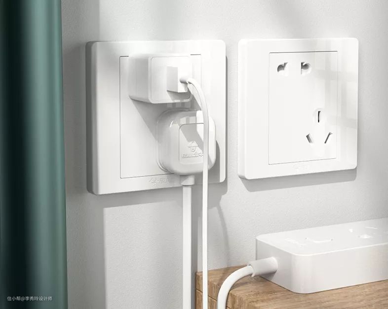 ③ 厨房要选择带单独开关的插座,小电器不用经常拔插头。床头的插座,可以选择带USB接口的,可以直接用于手机充电。家中有小孩,插座一定要选防止误触功能的。