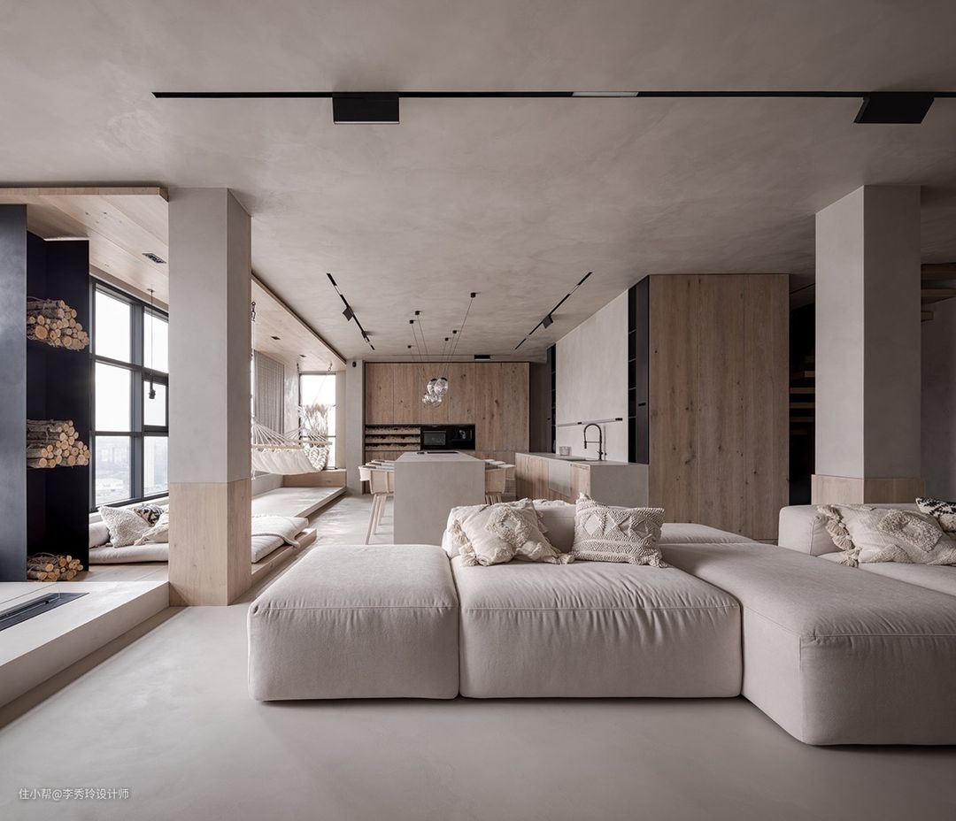 泡杯咖啡,看本书,撸撸猫,眺望远方城市的风景,就是最好的放松方式!在吧台位置的选择上,既可以靠窗设计,也可以靠客厅一侧: