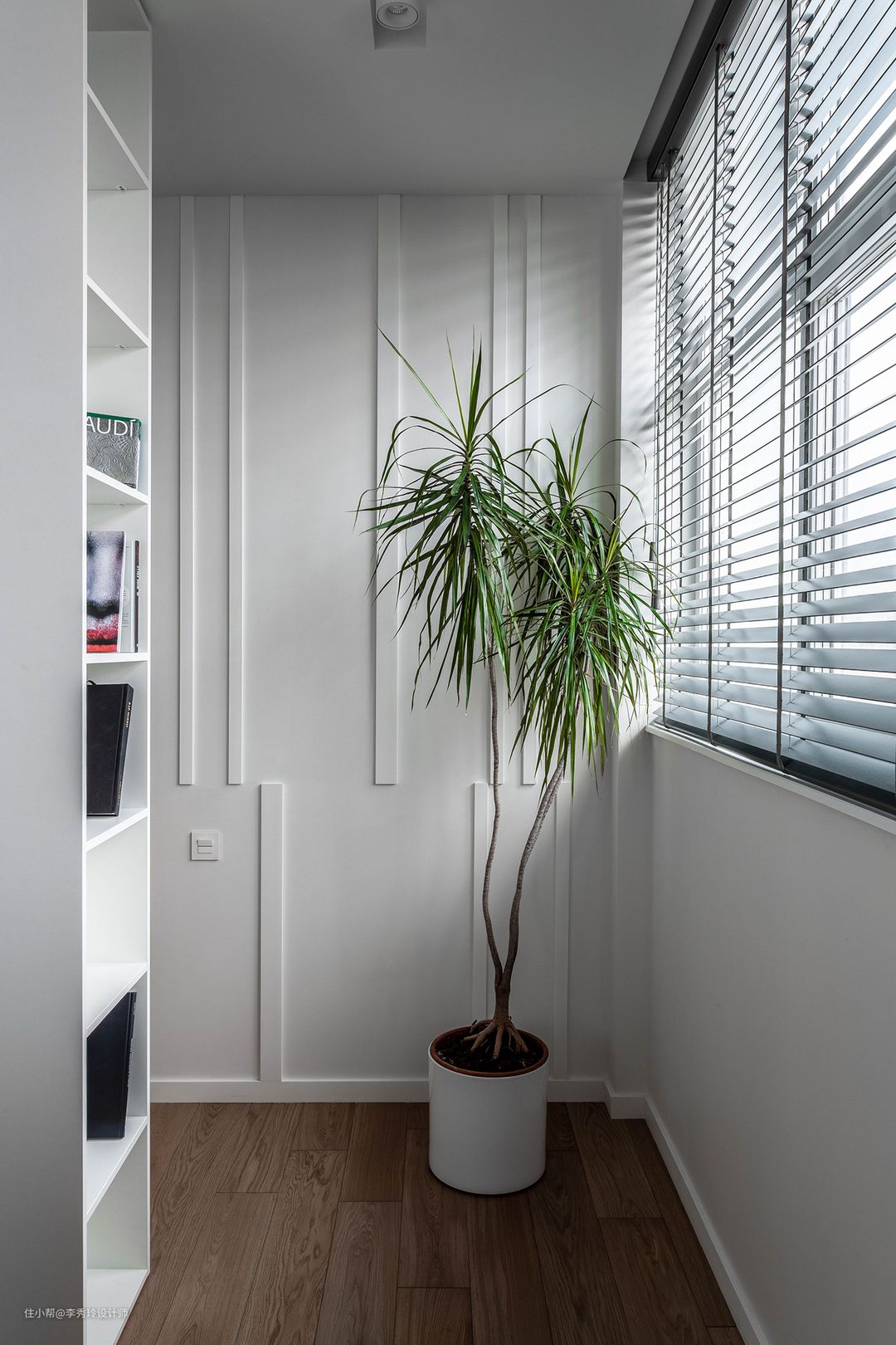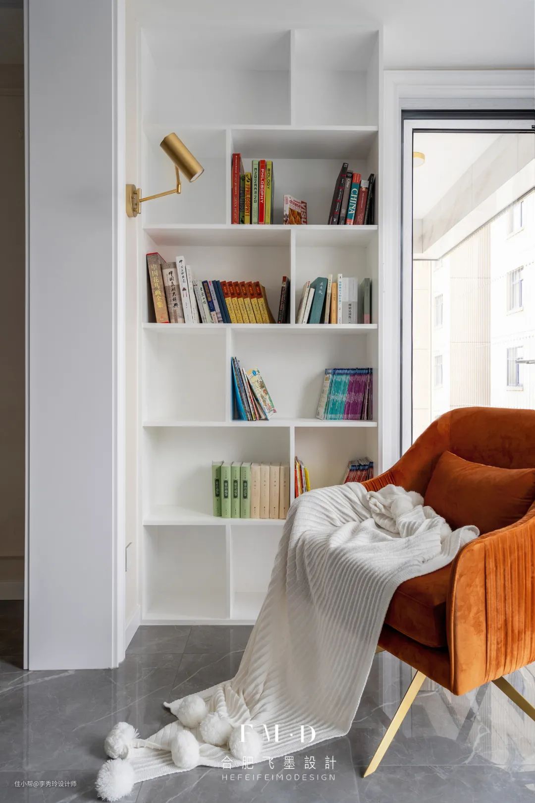 注意,考虑到阳光下阅读影响视力,建议在阳台安装纱帘遮挡光线,也可以增加一盏阅读灯,方便夜晚阅读使用: