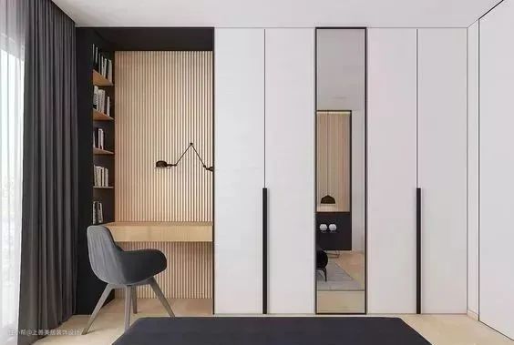 门可以设计成和柜子融为一体,这样基本上可以达到很好的隐藏效果。一般在衣帽柜和储物柜这样的地方,很适合做隐形门。