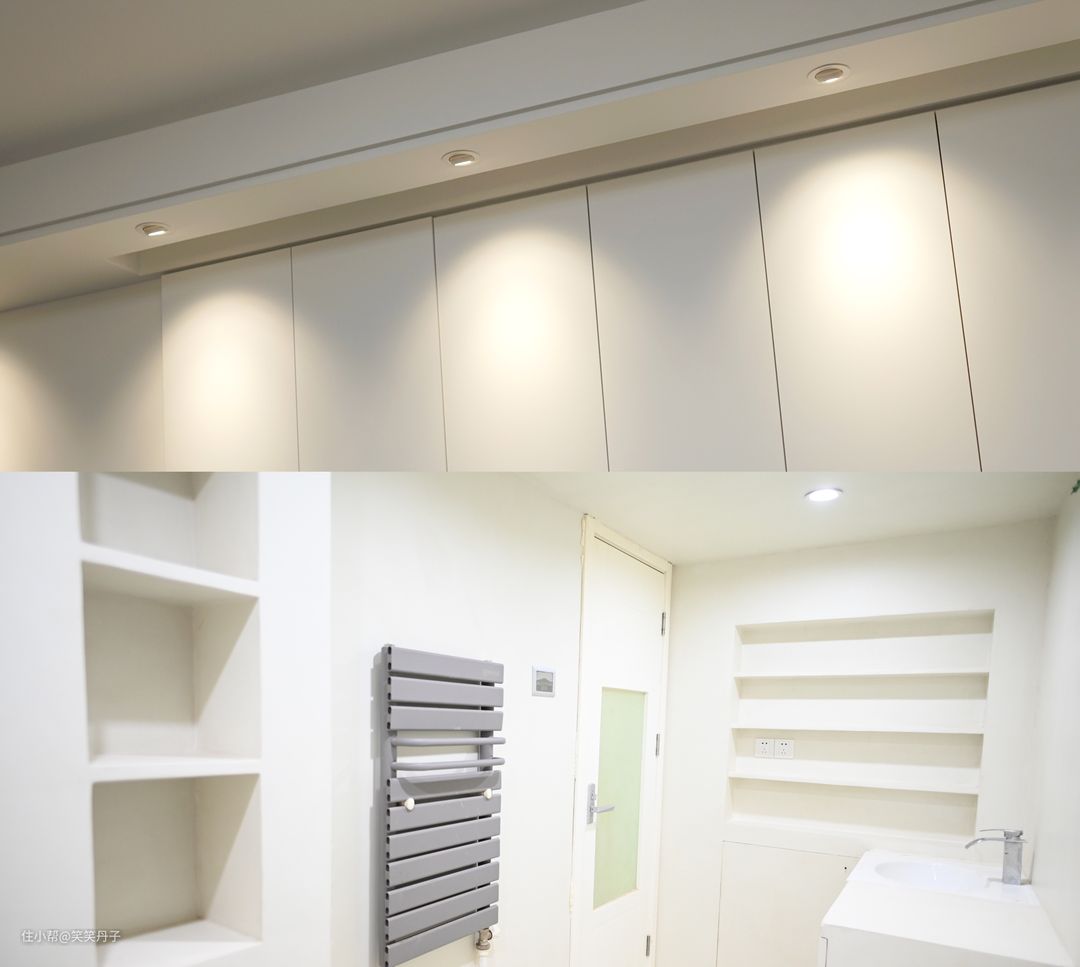 这是改造前(图上)和改造后(图下)的对比照片。虽然以前的射灯也有一定的防眩功能,但是对比来看之前的灯效确实更刺眼一些。