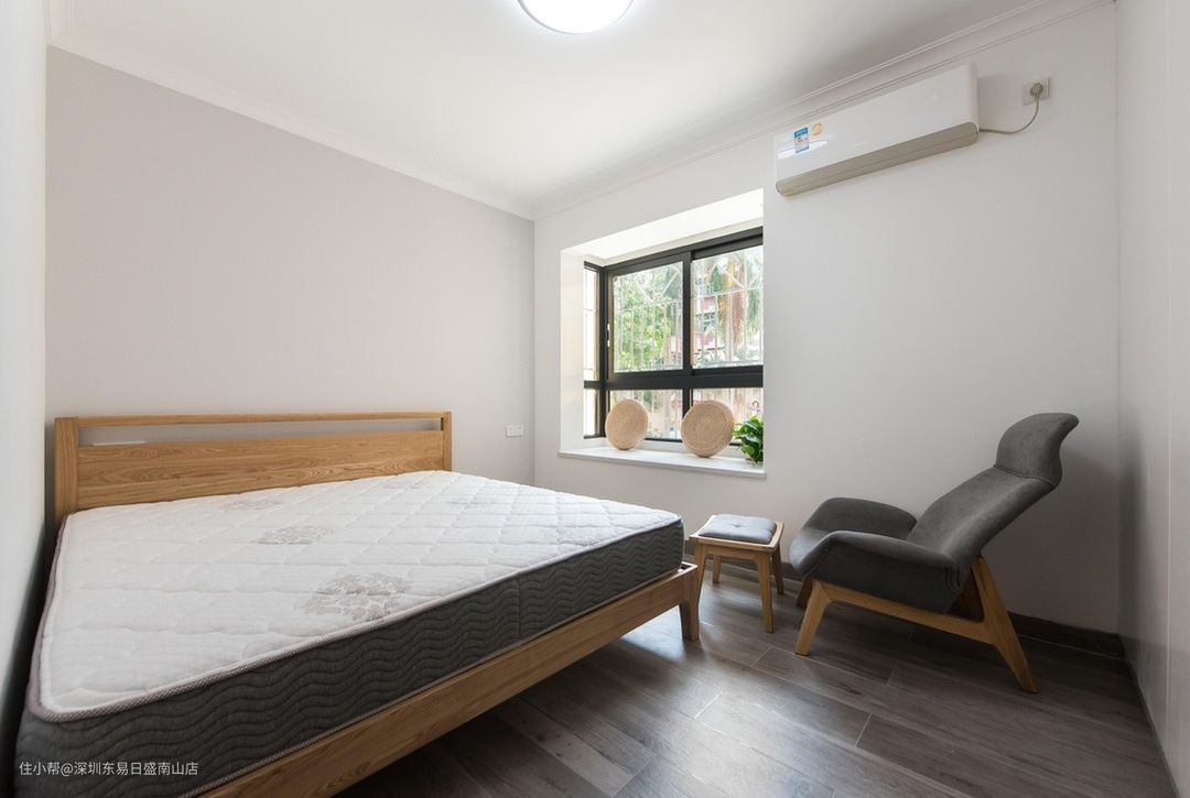 常规放置1.5米的床,和衣柜不放其他的家具,为了扩大空间,既不满足业主需求也不影响业主使用。