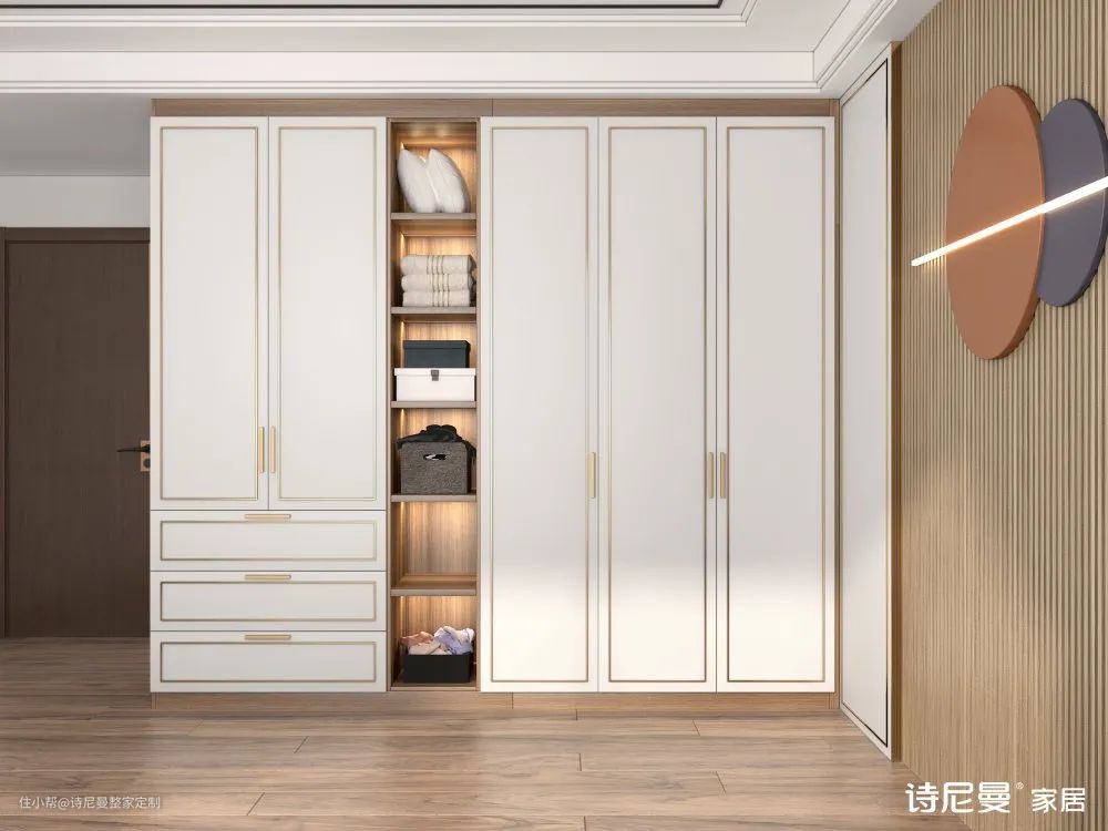 轻奢风的墙壁装饰,想要有点不一样?不如参照这个次卧:以护墙板和长城板为装饰的背景墙,与图案、颜色、造型不失设计感的墙面挂饰组合在一起,比起装饰挂画来更胜一筹!