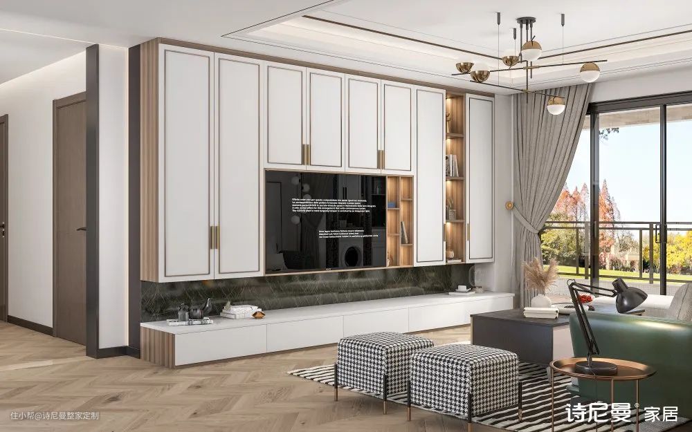今天带来一套126㎡的轻奢风案例,设计师结合业主的喜好和功能化需求,全屋柜体选取了烟熏檀木+雅光白两种饰面板,适当加入其他材质进行拼接重组,营造了一个精致有品味的轻奢住宅。
