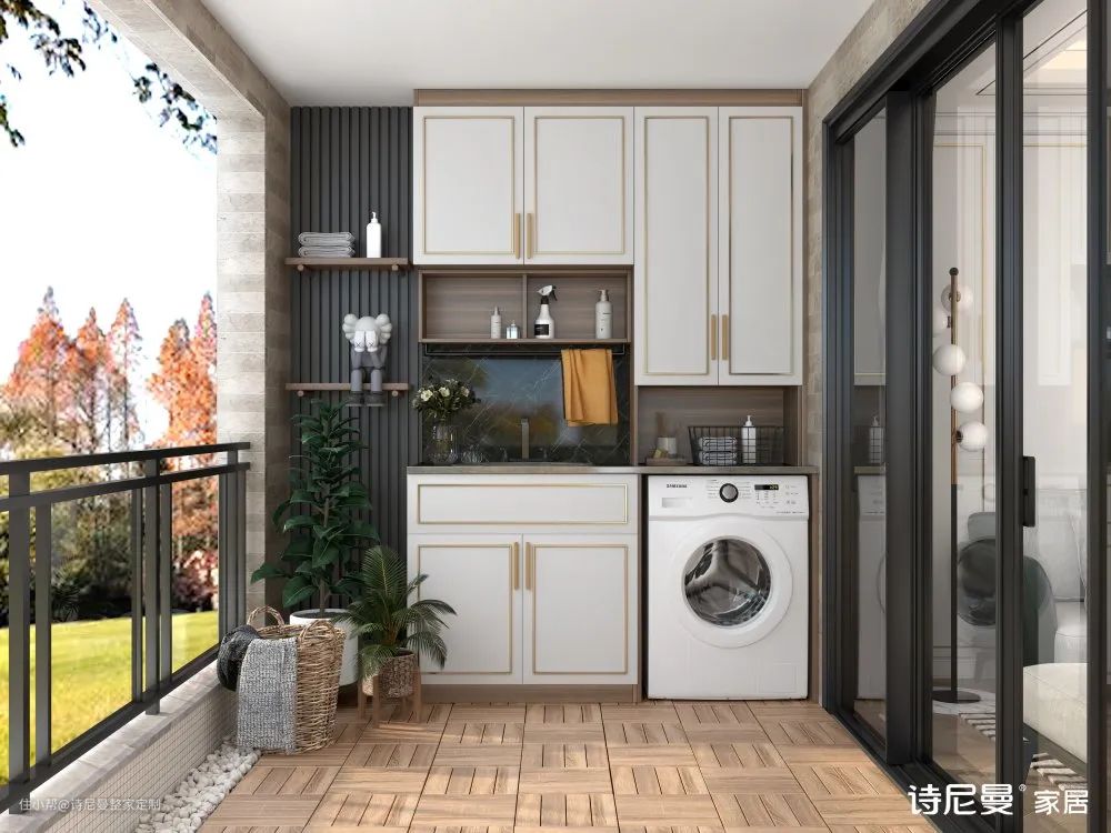 颜色柔和的雅光白柜门加入利落的现代化金属线条做点缀,奢而不华,呈现一种低调的优雅。自带光泽度的卡拉卡拉+黑云岩的防火板作为背景,中和了柜体的单调感,丰富了入户空间的色彩层次。