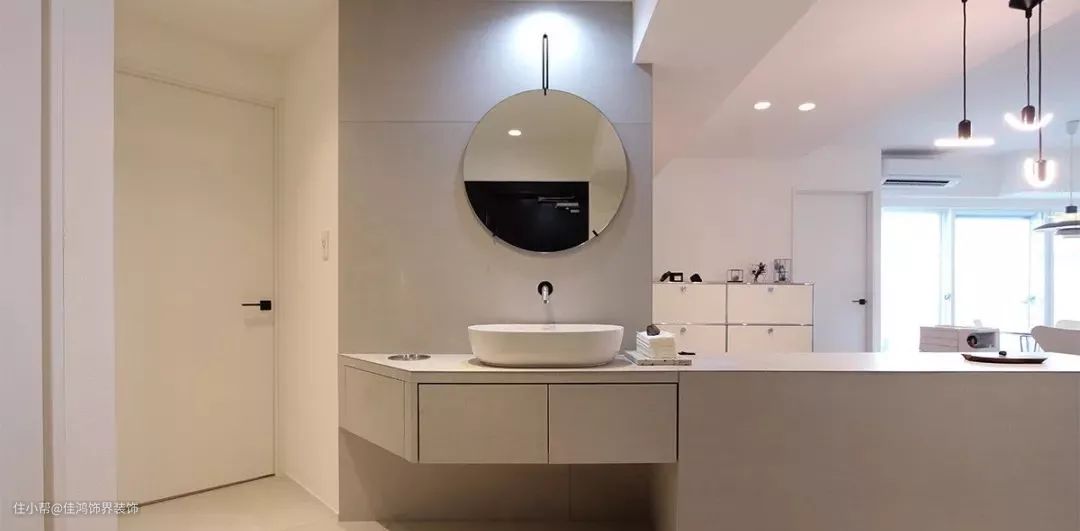 一体式的台面比较好做清洁,不用纠结安装台上盆还是台下盆,没有卫生死角。另外,考虑到日常要洗头、洗衣服之类的,台盆越大越深越好,搭配抽拉式水龙头更加好用。总之,设计是为生活服务的,怎么方便就怎么设计。新房装修之前,试想一下自己要在这个空间怎么生活最方便,细节比外观更重要,这决定了往后几十年的居家幸福感。