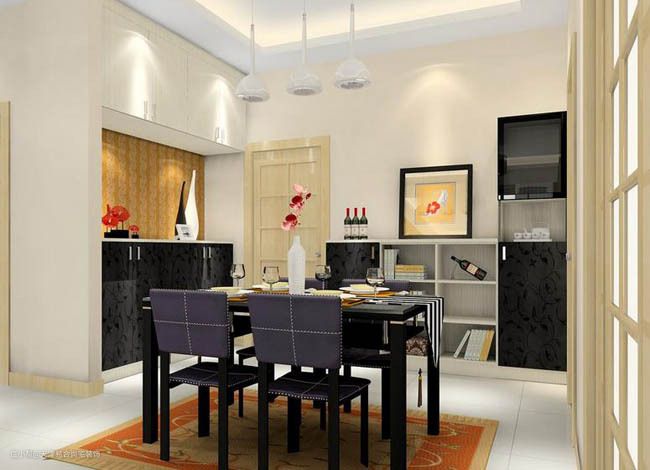 35平米低调奢华现代简约客餐厅装修设计天津易合尚宅装饰2021-05-19这套客餐厅装修设计方案有黑色的沉稳和白色的轻灵,再配以暗底花纹是整个空间优雅而具魅力,时尚的柜体设计以低调奢华铺陈出空间的高贵大气!一起来看这现代简约客餐厅装修设计吧。