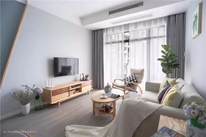 个人是比较喜欢蓝色的窗帘搭配灰色的沙发的,哪怕是一个迷你的小客厅,也不会显得太过狭小,给人一种小清新的感觉。