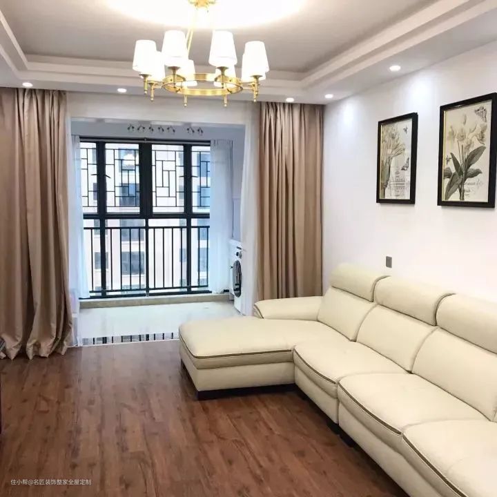 比较和谐一些得到就是把地板和窗帘选择相近的颜色,比如白色,纯白的窗帘可以让客厅拥有更良好的采光,如果怕太单调,就选择深色的墙面和点缀。