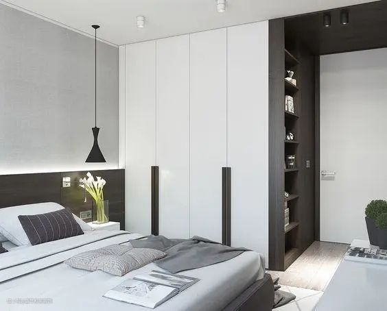 床头柜,在床头打个带壁龛的L型衣柜。也是很不错的选择,即满足了床头收纳的需求,又增加了卧室收纳空间,可谓是一举两得。