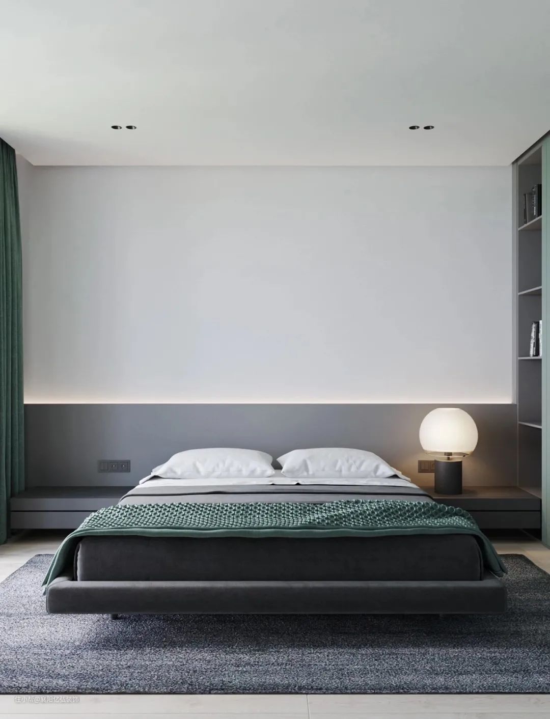 我们可以在床的两侧,铺上小面积的地毯,一起床就能感受到地毯的温暖,一天的美好由此开始。