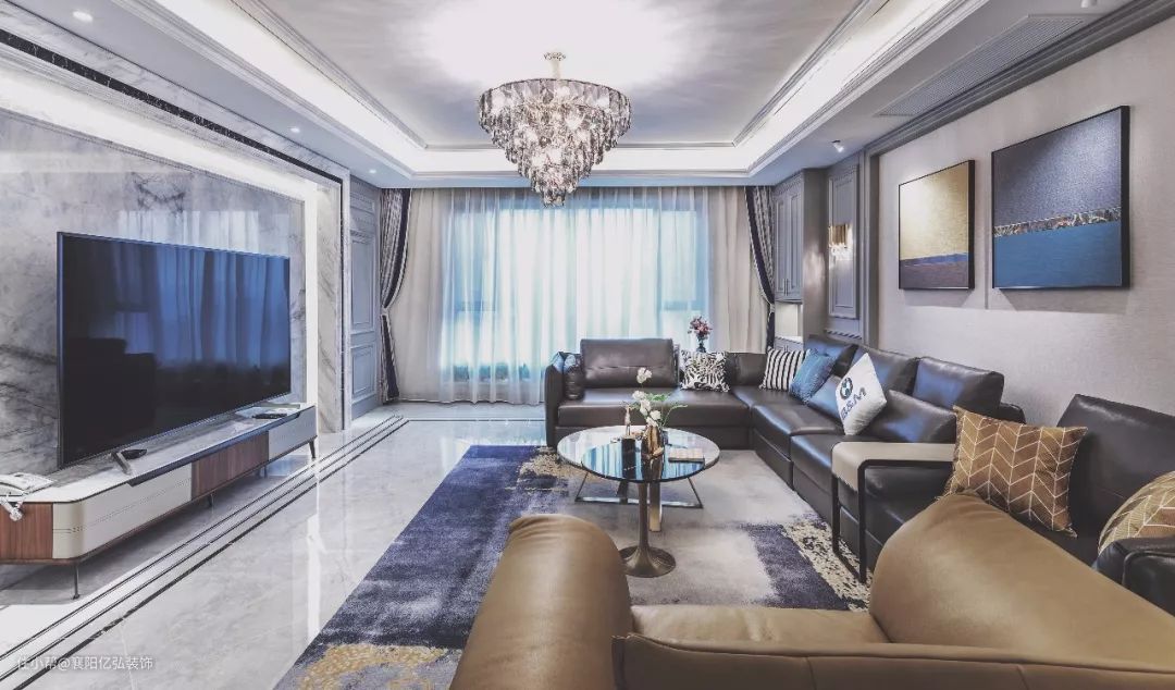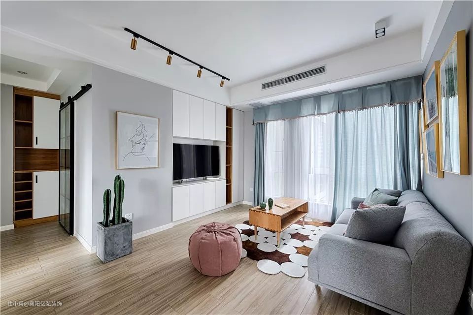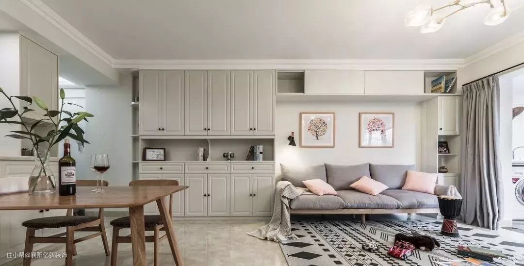 地毯材质确定了,但是要铺得好看,还要考虑地毯的大小跟客厅面积相协调。地毯太大或太小,都会显得突兀,所以地毯的尺寸和铺法选择也很重要。