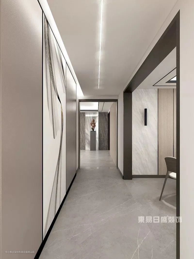 全隔断玄关设计为全幅的,由地至顶,主要是是为了阻拦视线,保证私密性。选用的材料也比较多样性。