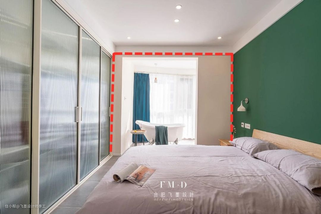将阳台拉门打通,直接摆上成品大浴缸,这里便是沐浴区,这样每天洗完澡直接就能睡觉了,不要太舒服~