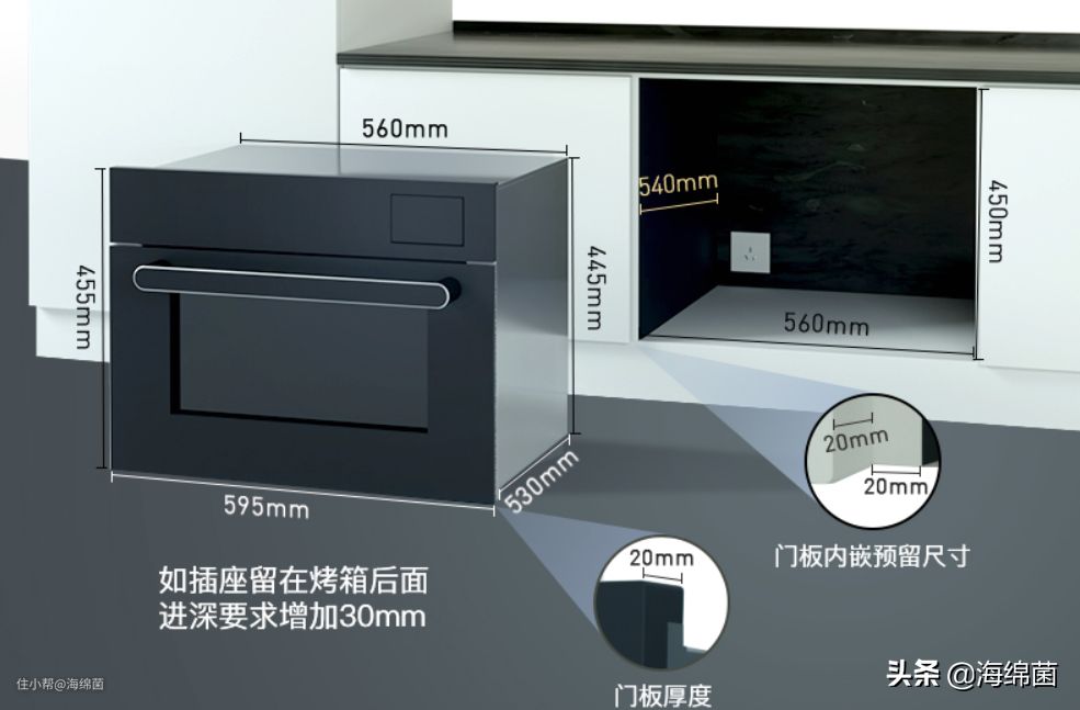 嵌入式蒸烤箱的安装其实一点也不麻烦,我们只需要橱柜下方预留好空间,如果是新装修的,和橱柜设计师沟通好就可以,或者直接在产品详情页找到安装图示发送给设计师。