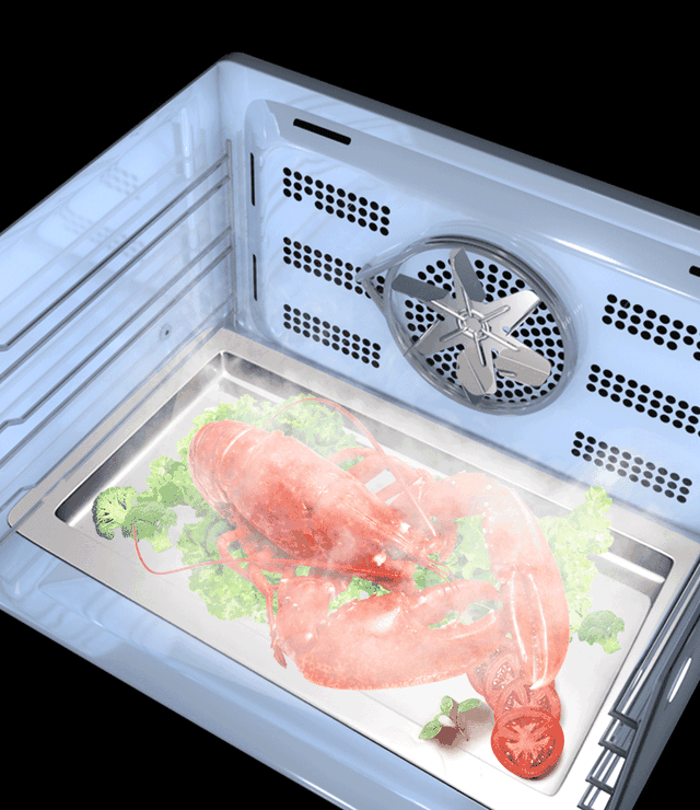 因为蒸菜时高温蒸汽会充斥整个内腔,背部风扇带动蒸汽均匀地穿透加热食物,如果想要达到高温蒸的效果也可以选择上下加热管一起协同的模式。即便是蹄髈,蹄筋这种食材也能给你蒸得透透的。