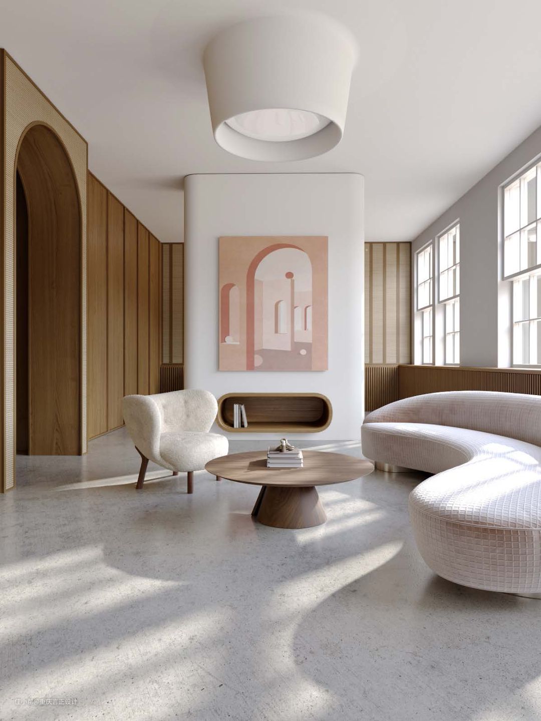 圆润的弧形设计可以起到弱化空间棱角的尖锐感,增添柔和的美感,很适用于有孩子的家庭。