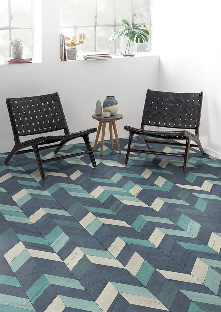 花色的设计采用几何撞色——极具现代感的简单的几何图形,再结合色彩之间相互碰撞,会更加具有艺术感。利用色彩间的视觉冲击,将几何元素独特的形态美感塑造、激活、强化,加深人对空间的感知。创新的耐磨层材料令地板表面坚固且耐细微划痕 - 33 使用等级同样适合高要求的商业空间应用,防滑性能达到 R10 等级