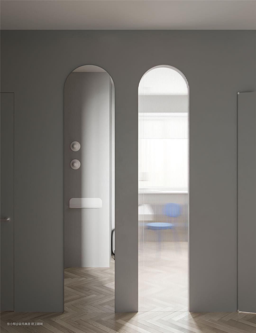 双层的长虹玻璃:可以起到挡人影的作用,隐私效果更好,同时两边都有长虹的纹理。卫生间的门,想要隐私效果更好,还可以考虑搭配玉砂/磨砂玻璃,做成透光不透人的效果。
