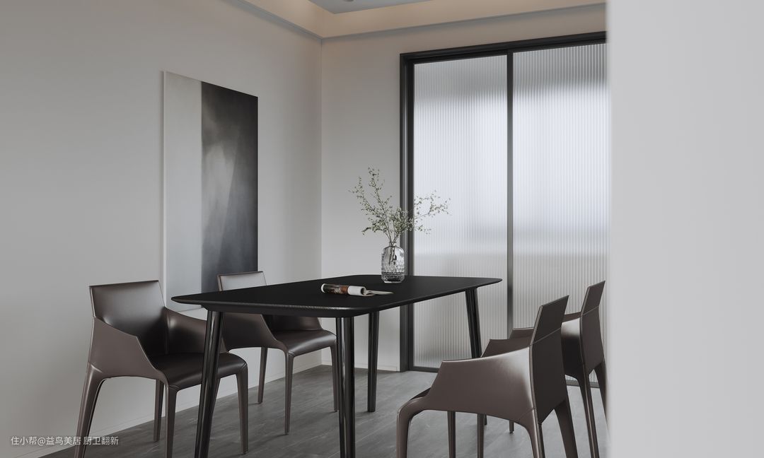 很多户型客餐厅之间一般都是连通的,用长虹玻璃隔断,进一步划分功能区,增强空间层次感。顺着墙面延伸出一片玻璃隔断,还能给空间增添几分美感。