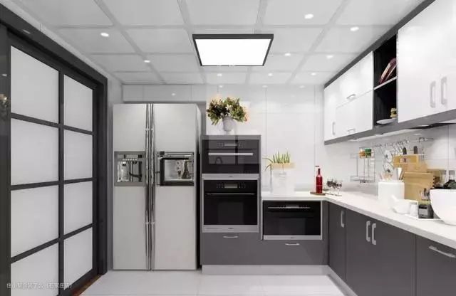 现在的橱柜,一般地柜里至少会有一个内嵌位置,至于是要放消毒柜、洗碗机还是烤箱,那就看个人需求了。当然,同样要记得留有充足的插座,至少要有3-5个(净水器、内嵌式厨电、小厨宝、厨余处理器等)。