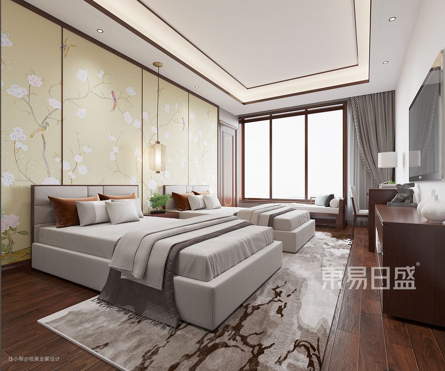 次卧室如果主要由老人居住就应选择一些较能使人安静和沉稳的色彩壁纸,也可根据老人的喜好选带些素花的壁纸。