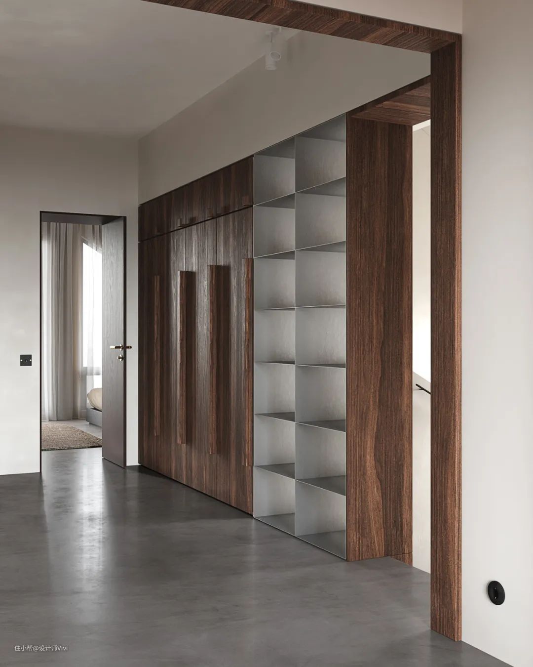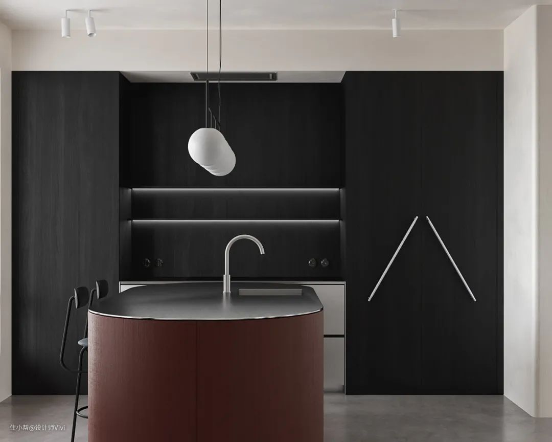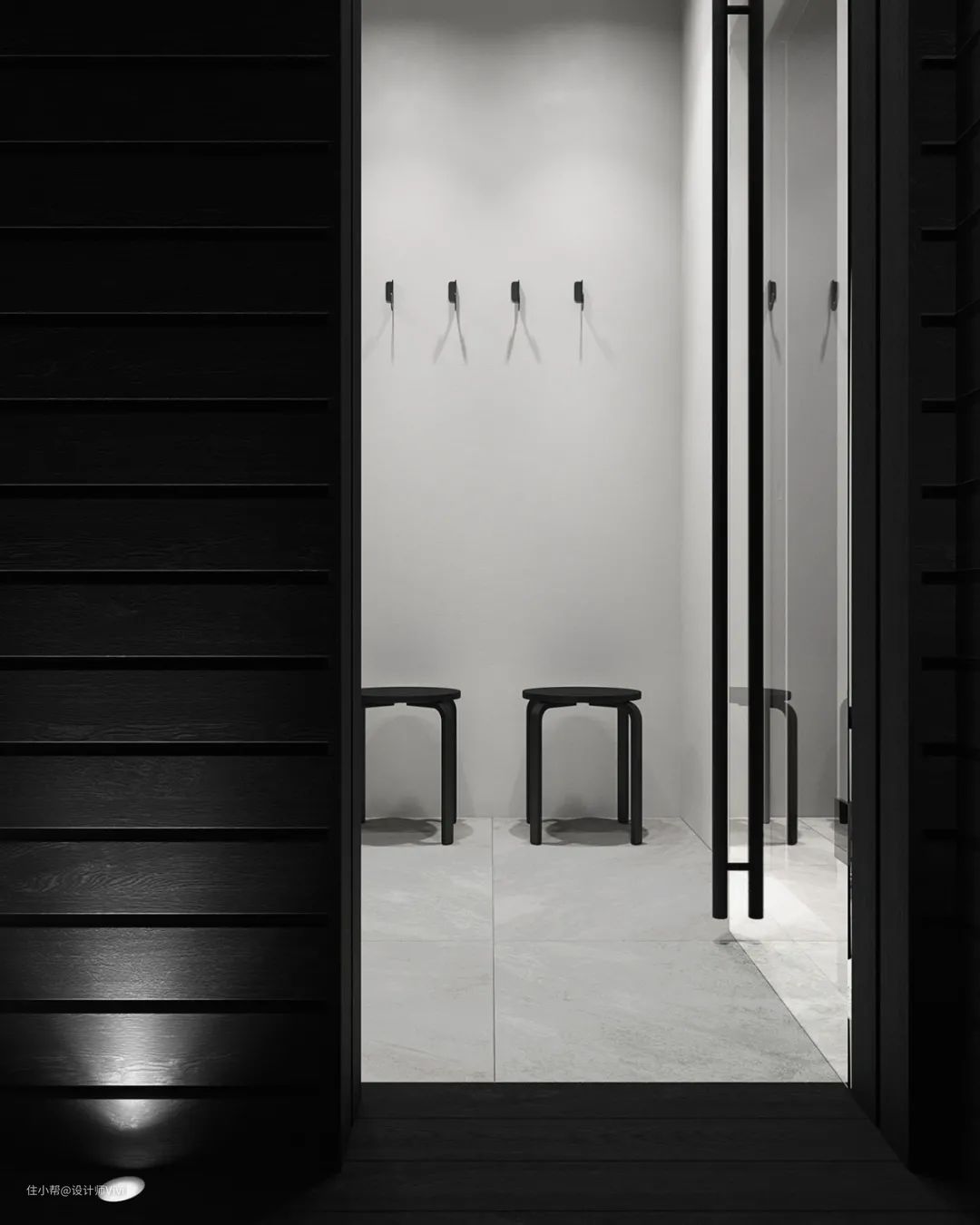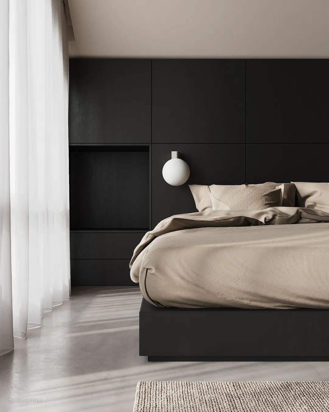 设计师依据居住者的生活起居特点,用简练的设计结合经典的黑白灰系主色调,不同灰度和肌理细节带来微差而平衡的美感。
