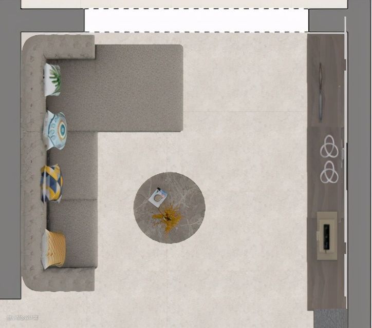 带贵妃位的L形沙发,体积相对较大,从大理卫生间的角度来说,贵妃位是靠客厅这边摆放比较方便的,因为靠客厅这边空间宽裕,搞卫生的时候可以把贵妃位挪到过道上,下方空间就容易清理到。
