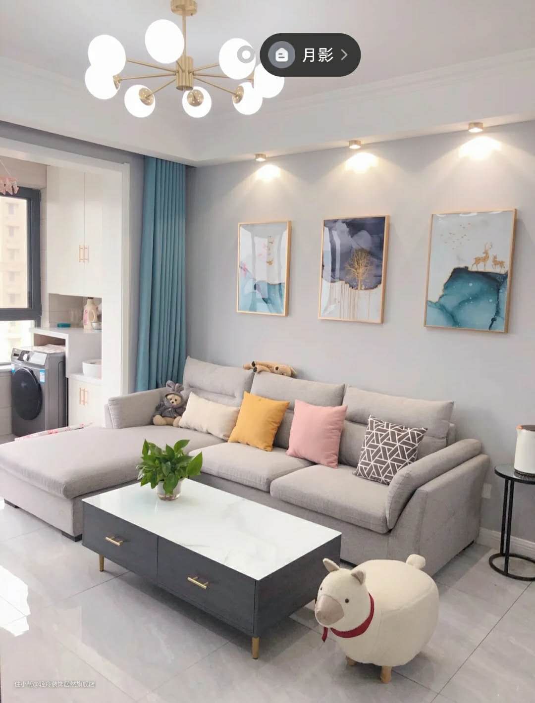 全屋灯具:月影凯顿,客厅灯选择的分子灯,温馨又不失高档,射灯照出的光影太好看了,跟挂画非常搭配;