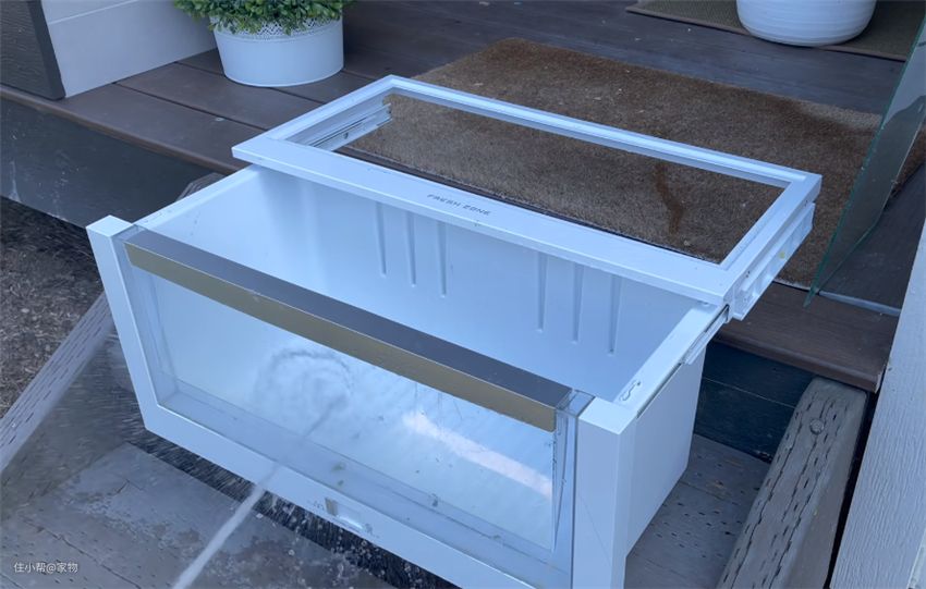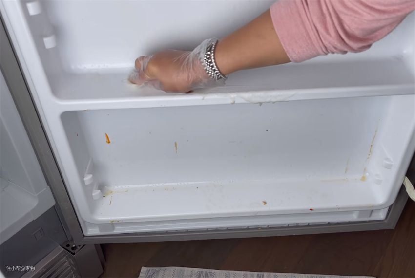 之后,用清洁剂将隔板上的灰尘进行清洁,配合上清扫刷,顽固污渍瞬间清除掉,冰箱门侧也用同样方式清洗,效果不错。