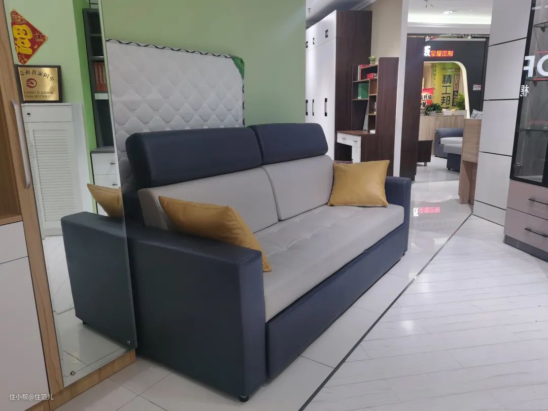 张小姐的家不到50㎡,直接在客厅用了这款,平时作为沙发,如果家里来人,就把沙发展开变成床。