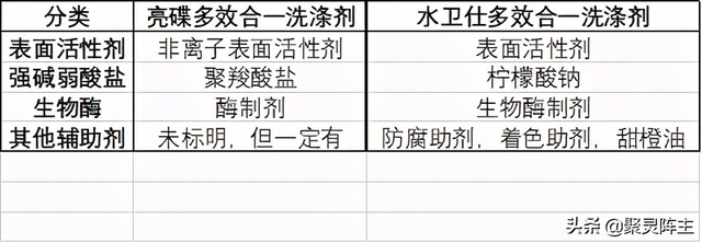 看着成分好像水卫仕的多出好几种,但是阵主告诉你,finish的肯定是没有把它的成分写全的,因为这种洗涤剂只要是带了香味,带了颜色,那么香味剂,着色剂肯定都是不可少的,下面阵主将这几个成分归了一下类,你就会发现他们配方的实质性成分是一样的。