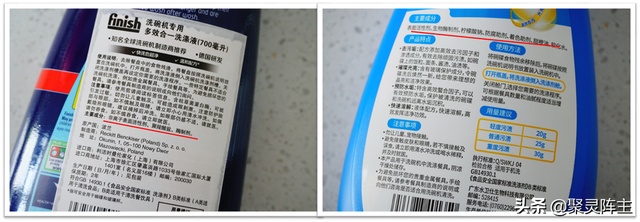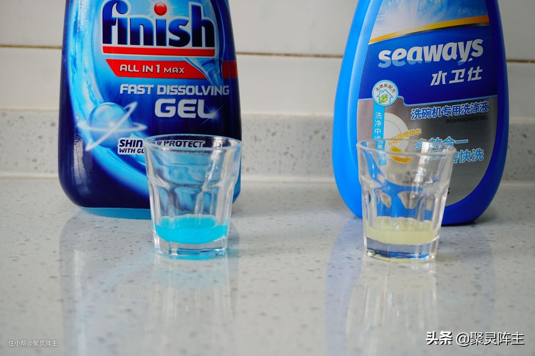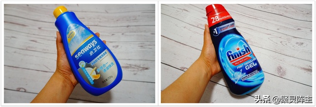 阵主所挑选的是阵主家自用的:finish多效合一洗涤液和水卫仕多效合一洗涤液。为什么选这两种呢?首先,阵主已经被洗碗液征服了,因为它真的可以做到无残留,既然阵主都选择了洗碗机,为什么还要因为洗涤剂的残留问题再重新手动洗碗呢?其次,阵主前面也说了,真正想做这个产品的厂家才能将这个产品的性能做好,所以阵主特意选择将咱的国产品牌水卫仕与行业标杆finish做对比。因为水卫仕是非常大的家用洗涤剂产品制造商,他们有自己的研发生产和销售团队,所以有能力去做将产品优化好的这件事,那么这样的对比才有意义。