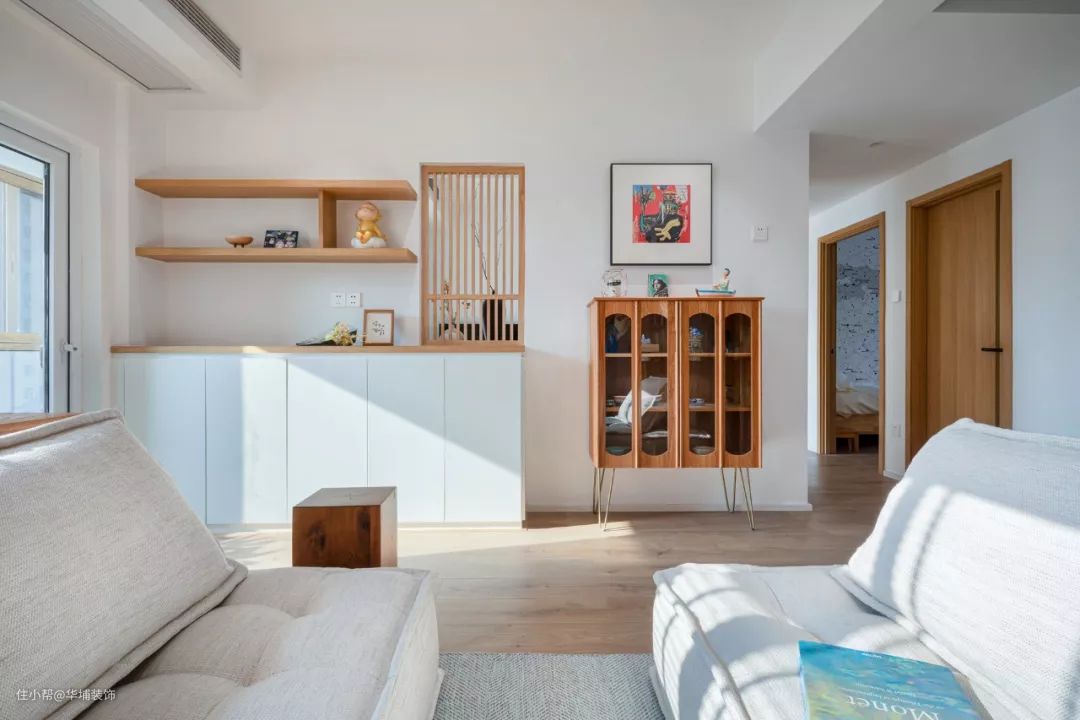 做成书架或者收纳柜,让客厅不再只局限于单一功能上,可以是亲子阅读室,也可以是手工活动室,还可以是茶歇区。