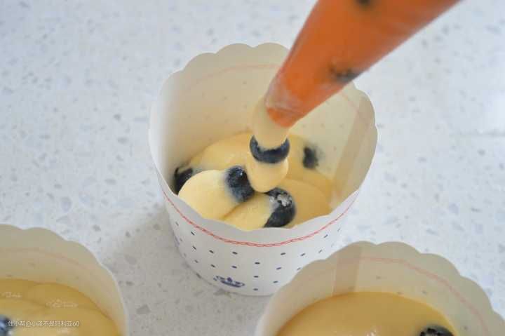 重复上面的步骤,直到最后一次加入面粉,完全搅拌均匀后加入准备好的蓝莓。
