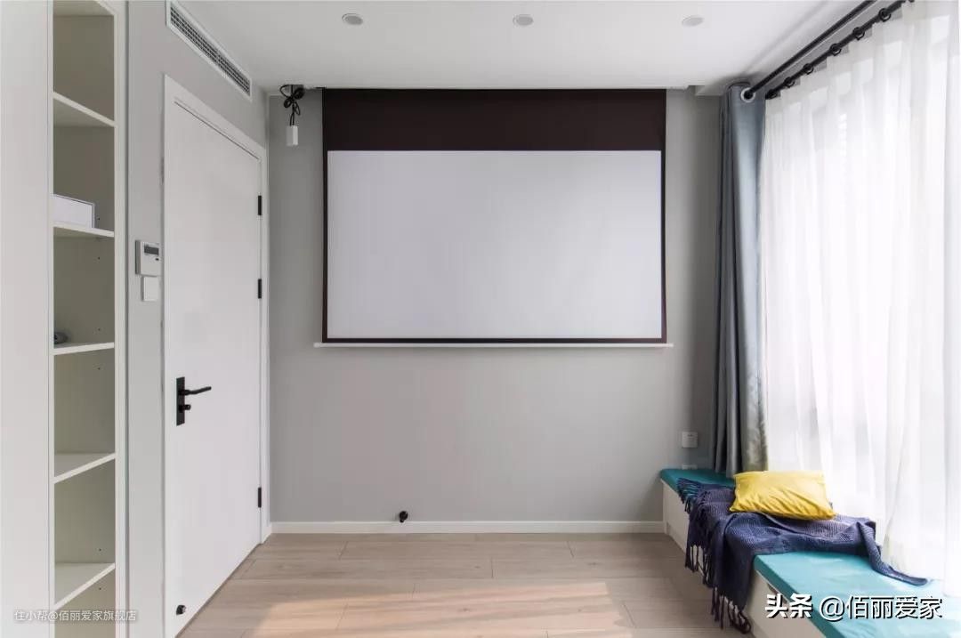 卧室在空白墙面上安装了投影幕布,靠在床上看电影很惬意。