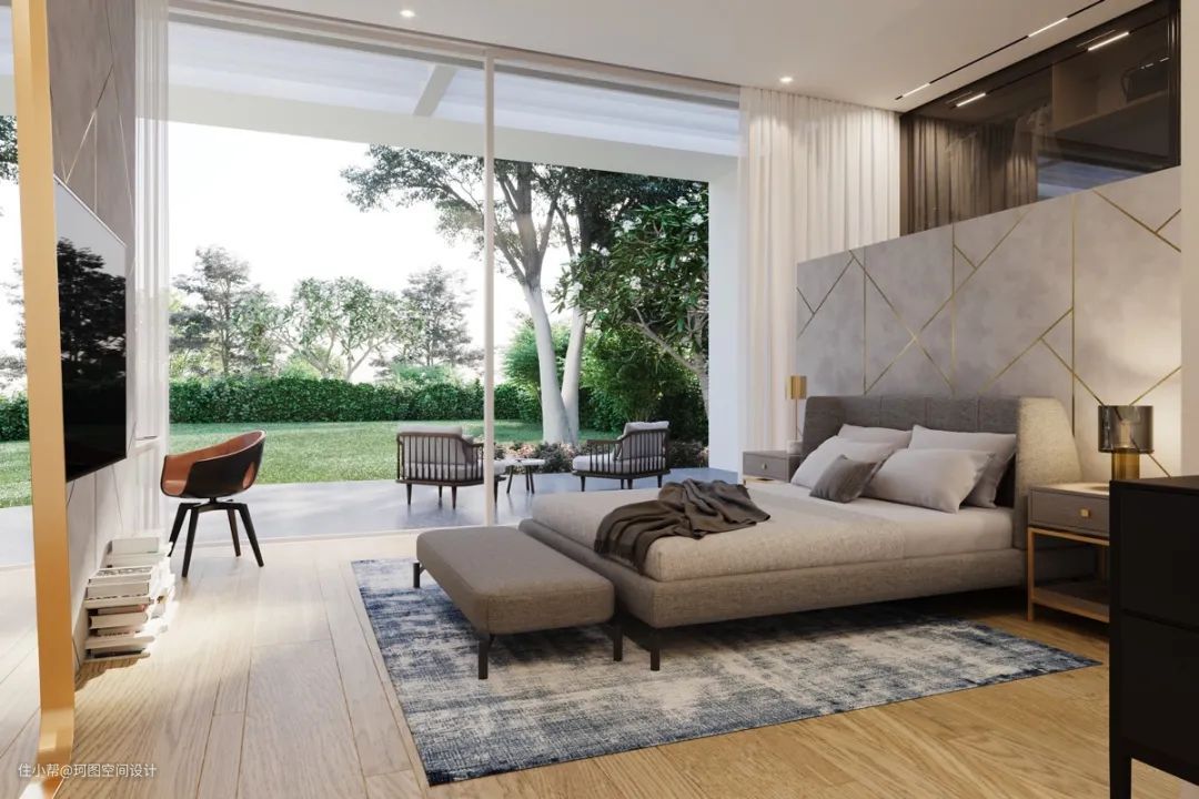 - 如果你是渴望拥抱自然,被清晨阳光照醒的人,那么这个卧室可能很适合你。不采用传统的床头板,而采用充满郁郁葱葱的绿色植物和自然光的中庭,如何?
