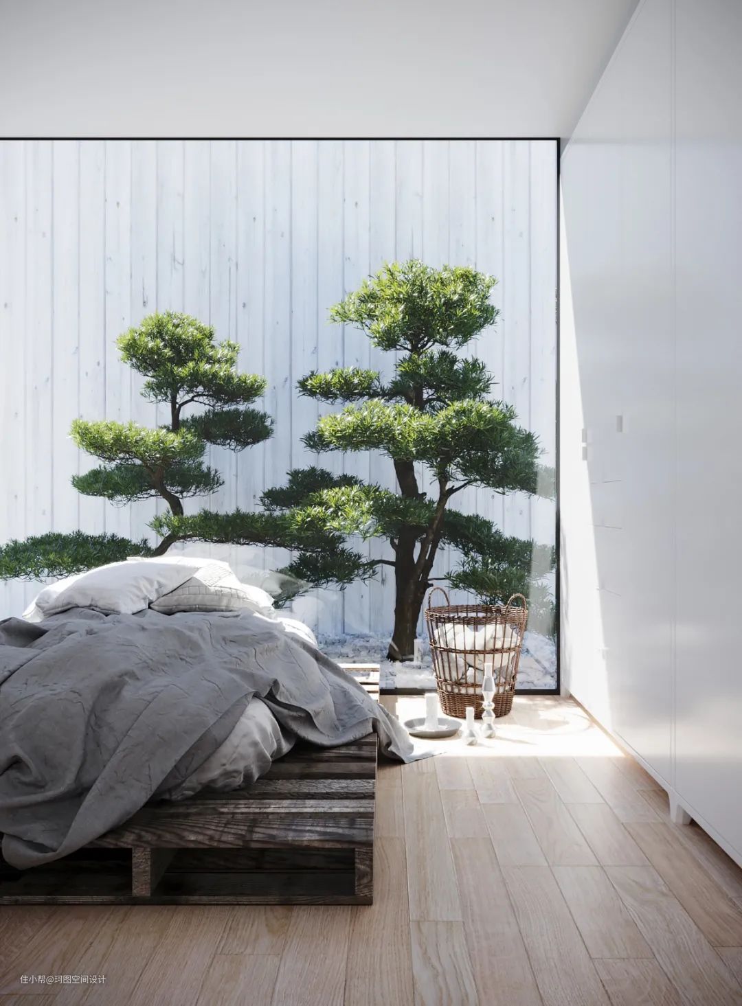 - 这间卧室利用了我们所讨论的许多元素,但它还结合了一棵小树,真正让这个设计变得生动。在卧室里添加植物可以让空间设计感到新鲜与充满活力。但你选择的花盆也可以让一切都变得不同。例如陶瓷花盆看起来肯定是比塑料花盆要豪华得多。