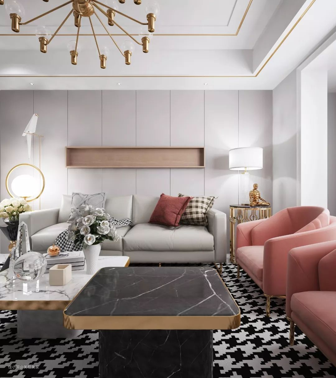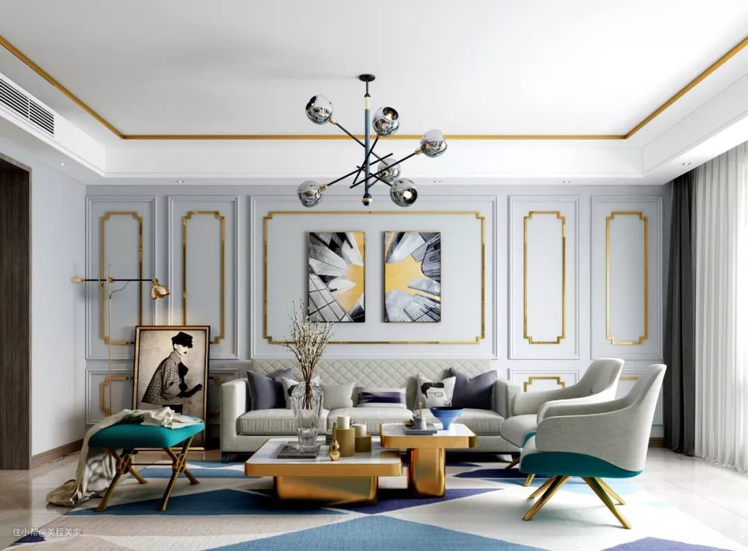 现代轻奢作为一种代表风格在最近又开始火热了起来,其势头已经逐渐改过了北欧风。关于金色的运用,也有一个规则,金色适合与任何颜色搭配,但金色的面积一点不能太大,否则就会有一种浮夸、俗气的感觉。